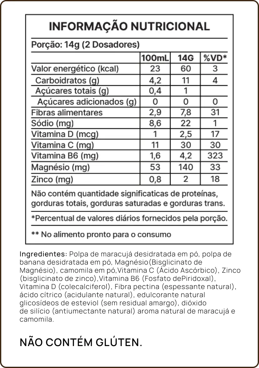 Maracujá, camomila, magnésio e B6 pra relaxar, aliviar a tensão e preparar seu corpo pro descanso. Quente ou gelado, é cuidado num gole. 🌙