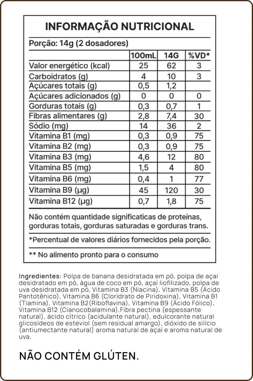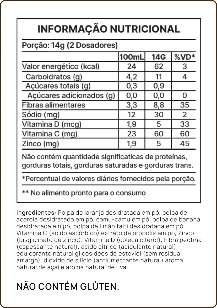 ✔ Sem açúcar, maltodextrina ou aditivos artificiai.